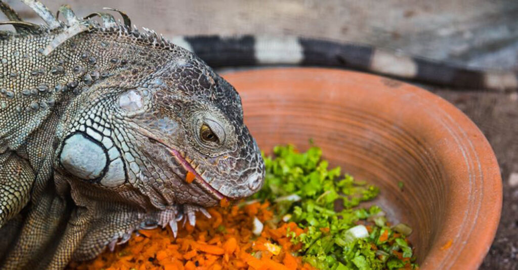 Makanan Alami yang Aman dan Disukai oleh Iguana Peliharaan – Iguana, terutama jenis hijau (Green Iguana), adalah reptil herbivora yang